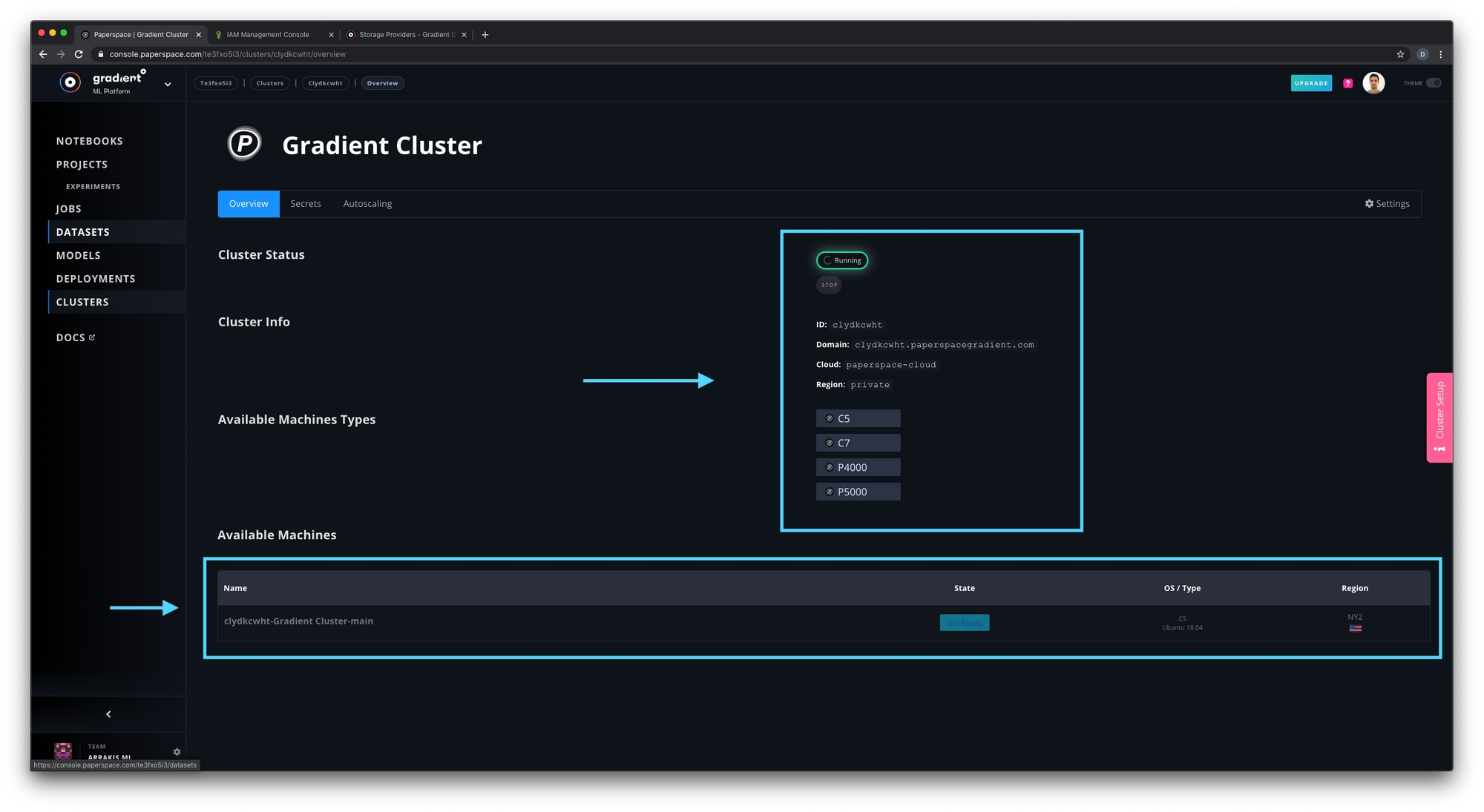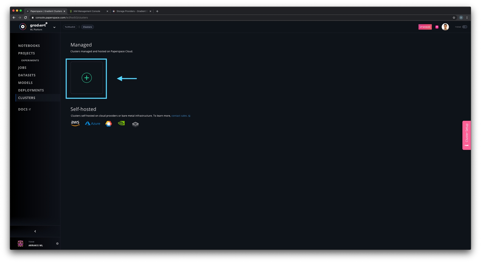 Note: Managed clusters run on the Paperspace cloud. If you are looking to create a self-hosted Gradient cluster, see the Gradient Installer CLI.