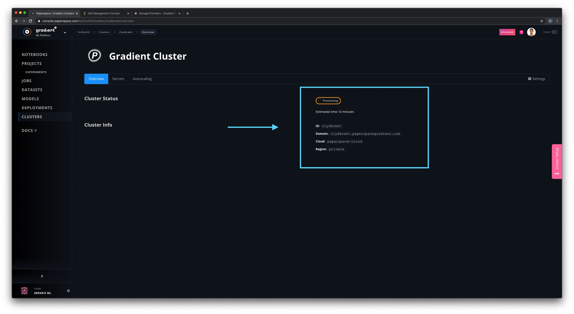 For creating a private cluster on the Paperspace Cloud.