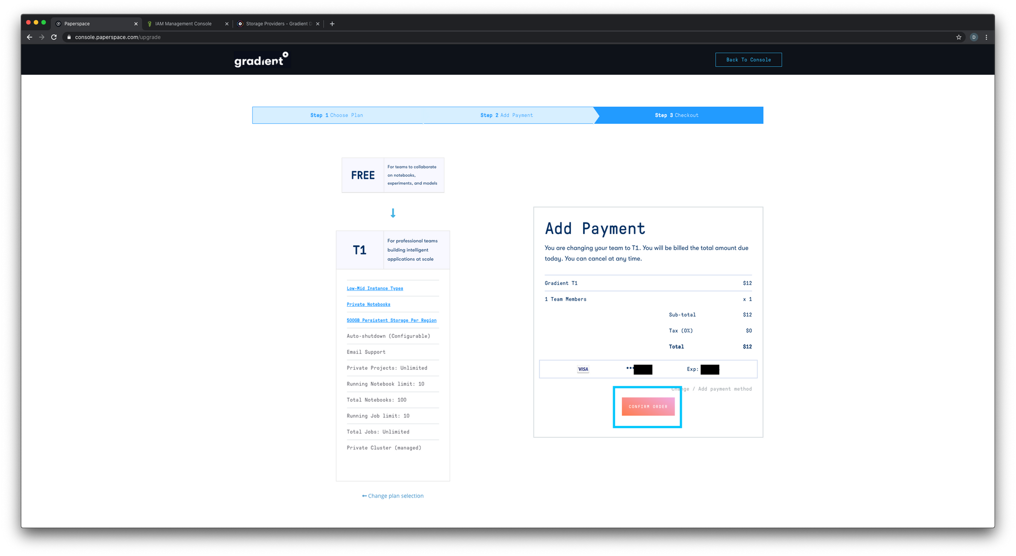 However for our purposes we will be selecting the T1 upgrade and will be asked to confirm our order.
